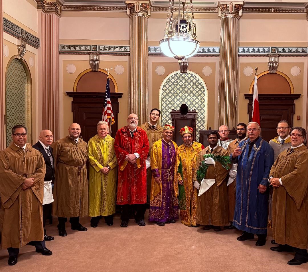 W trzecia srode pazdziernika 2025 roku, Loza Kosciuszko zaprezentowala tzw. Hiramic Drama. Jest to ekslukzywnie nowojorska czesc masonskiego rytualu. Na zdjeciu czlonkowie Lozy w historycznych kostiumach.
