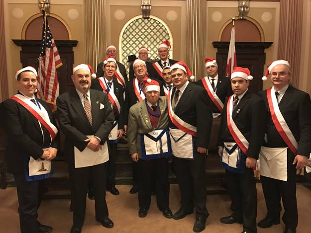 Józefie Walla. Pani Walla w tym roku skończy 95 lat!!! Na marcowym zebraniu Loży Kościuszko (3/15/2017) pojawił się (urlopowany) brat Gabriel Rincon, który aktualnie odbywa służbę wojskową w Armii Stanów Zjednoczonych. Brat Rincon przyszedł do Loży w galowym mundurze. W niedzielę, 7 marca 2017 członkowie Loży Kościuszko tradycyjnie juz odwiedzili Blanche Walla, wdowę po Bracie Jozefie Walli, który przez ponad 50 lat był aktywnym członkiem naszej loży. Na zdjęciu od lewej: Janusz Krajnik, Donald Mattson, Ron Estes, Krzysztof Winnicki i David Estes. W srodku Blanche Walla. Na zdjęciu, bracia Loży Kościuszko w swiątecznym nastroju po zebraniu 21 grudnia 2016 r.